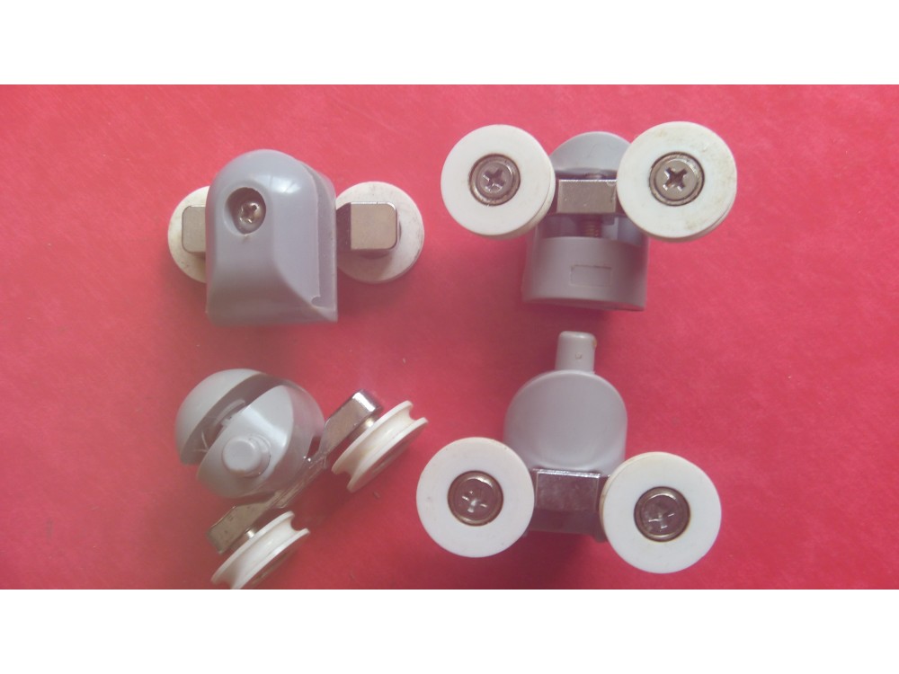a set of two grooved 22.00mm twin wheel single fitment height adjustable upper and two spring loaded lower shower quadrant roller units, sold as a set of four