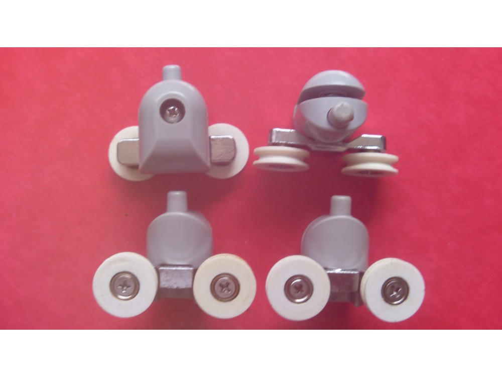 a set of four grooved 22.00mm twin wheel single fitment spring loaded lower shower quadrant roller units, sold as a set of four
