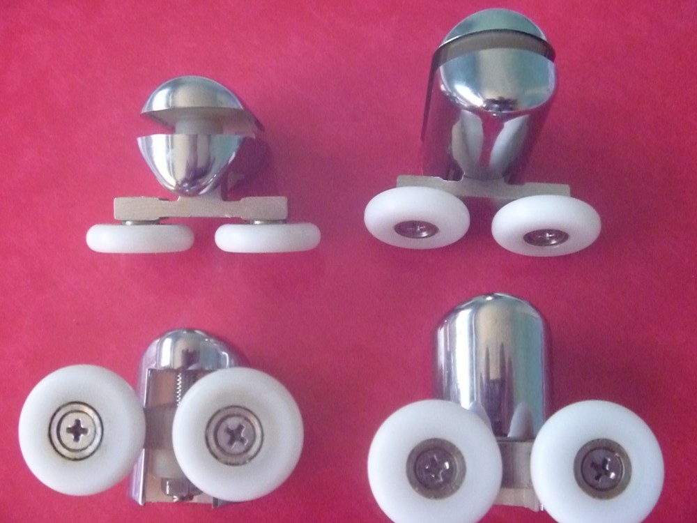 23mm twin wheel, chrome finnish single fitment quadrant rollers. Sold as four units - 2 x UPPERS..... 2 X LOWER