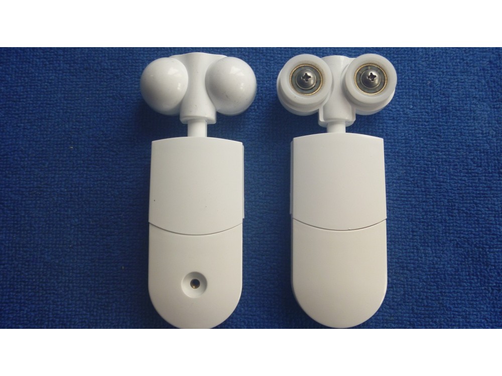 this is a pair of shower door hanger units with twin grooved wheels , the wheel outer diameter is 22.1mm and the groove diameter is 18.7mm